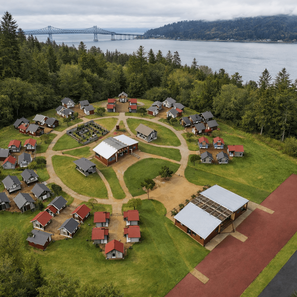 Phase 1 target: 25 units on 10–15 acres in rural Clatsop County. Break ground upon $1.6M secured. Phase 2: Wahkiakum County, Washington, anchored by the WA Housing Trust Fund rural set-aside.
